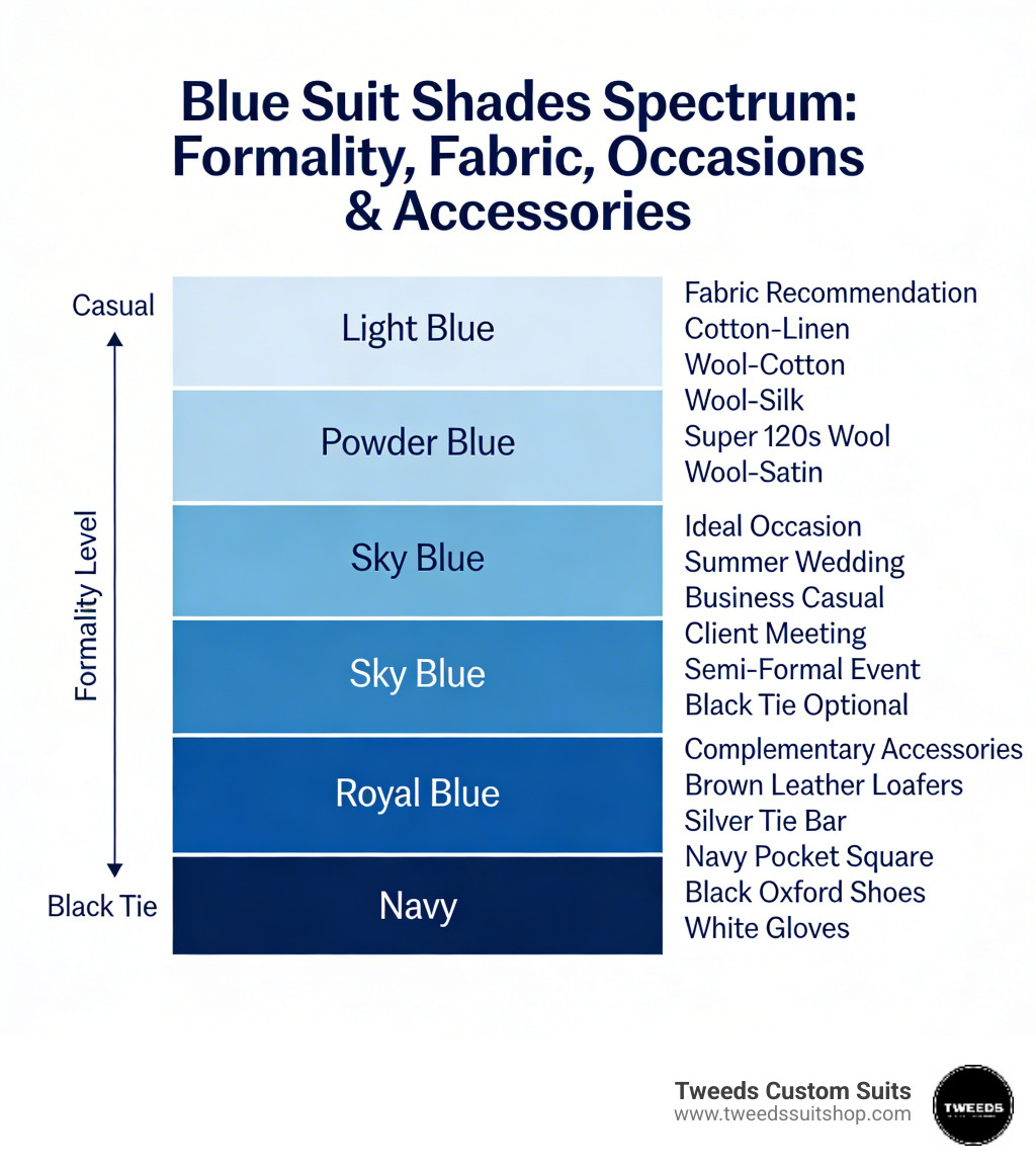 - Matching Too Closely: Don't wear a light blue shirt that is the exact same shade as the suit. You'll look like a giant marshmallow. Create contrast with a white or very pale blue shirt.